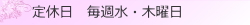 営業時間 10:00~19:00 定休日 毎週水・木曜日